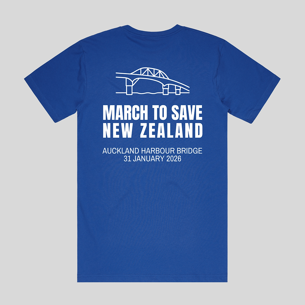 Every T-shirt you buy helps spread the message of NZ Day — March to Save New Zealand, happening 31 January 2026 across the Auckland Harbour Bridge. These shirts aren’t just clothing — they’re conversation starters, a bold statement of faith, freedom, and the Kiwi way of life. Stock up for your family and friends, wear them proudly in the lead-up to the big day, and become part of the movement to Keep NZ, NZ.